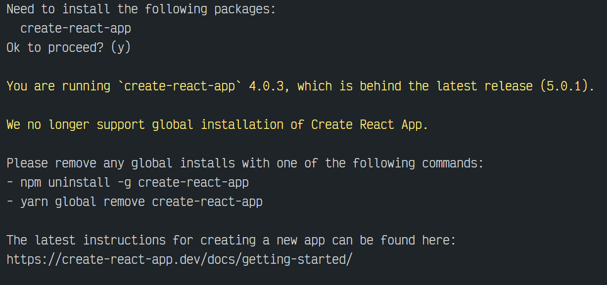 거두절미하고 해당 오류는 create-react-app을 전역으로 설치해놓아서 발생하는 오류이다.