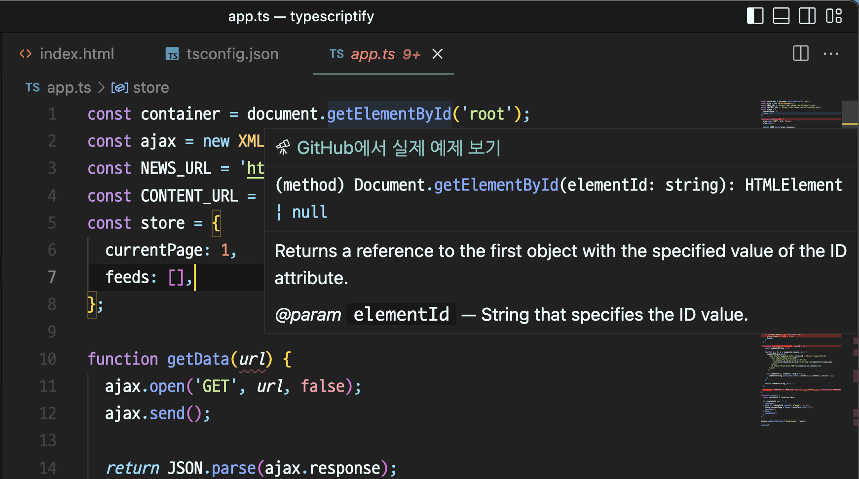 기존 코드에서 변수에 값을 가져오는 메서드에 마우스를 갖다대보자.