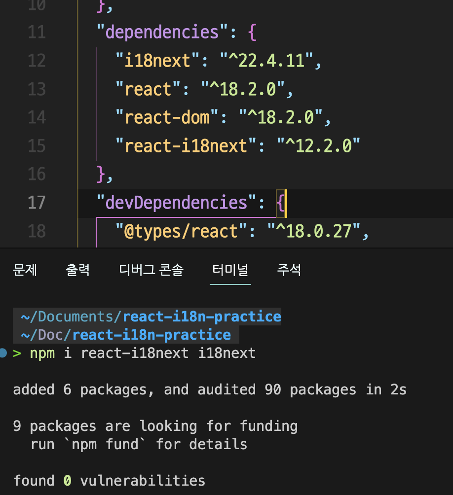 이제 react에서 사용할 국제화를 도울 모듈을 설치해야한다.