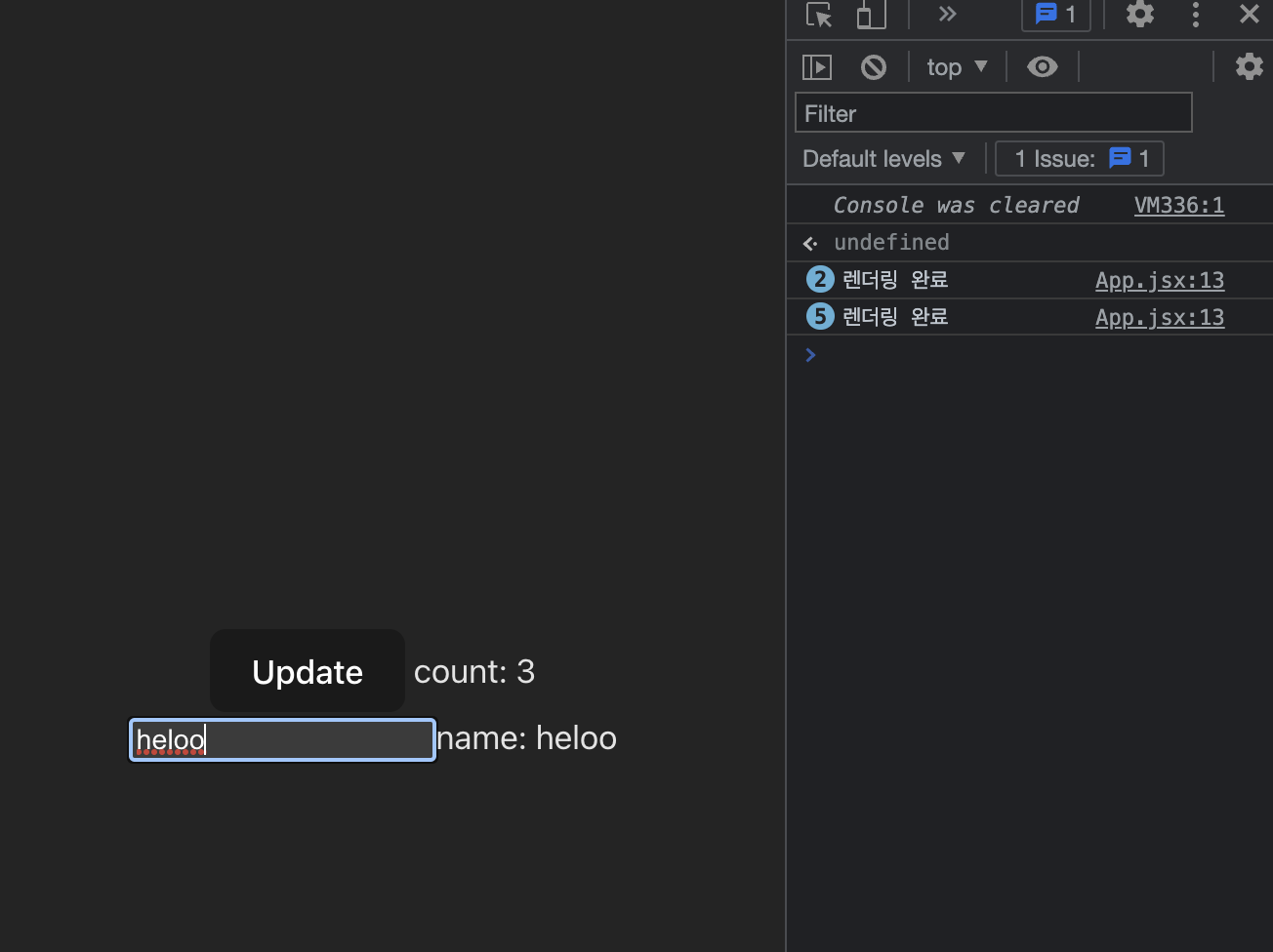 2. input 태그에 글을 입력할 때마다 옆에 문자를 추가해야 하기 때문에 화면을 새로 그린다.